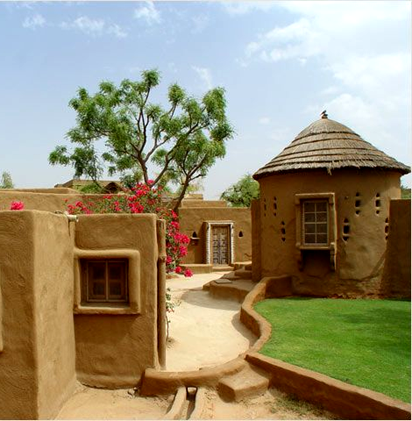 The raw, sustainable essence of rural Rajasthan brings earthy elegance and thermal comfort. A nod to grounding luxury.